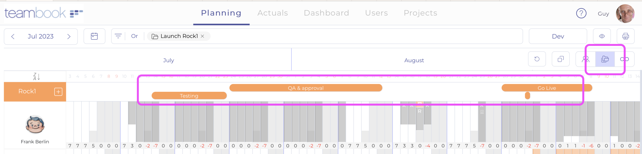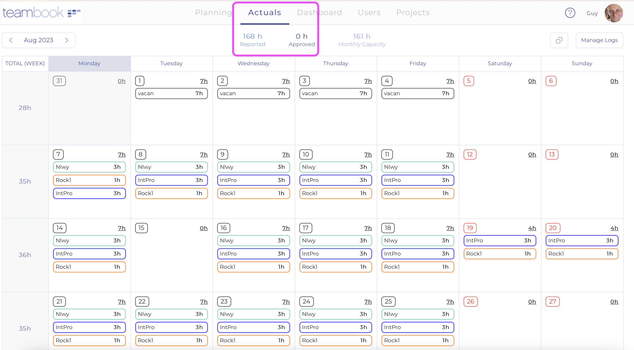 1. Scheduled Hours View: When planning each slot, Teambook displays the hours already scheduled, providing a summary view that helps prevent overbooking.