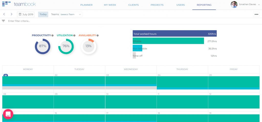 La utilización de recursos es una de las 3 métricas clave que calculamos automáticamente para usted en Teambook, para medir su rendimiento y eficiencia de facturación.