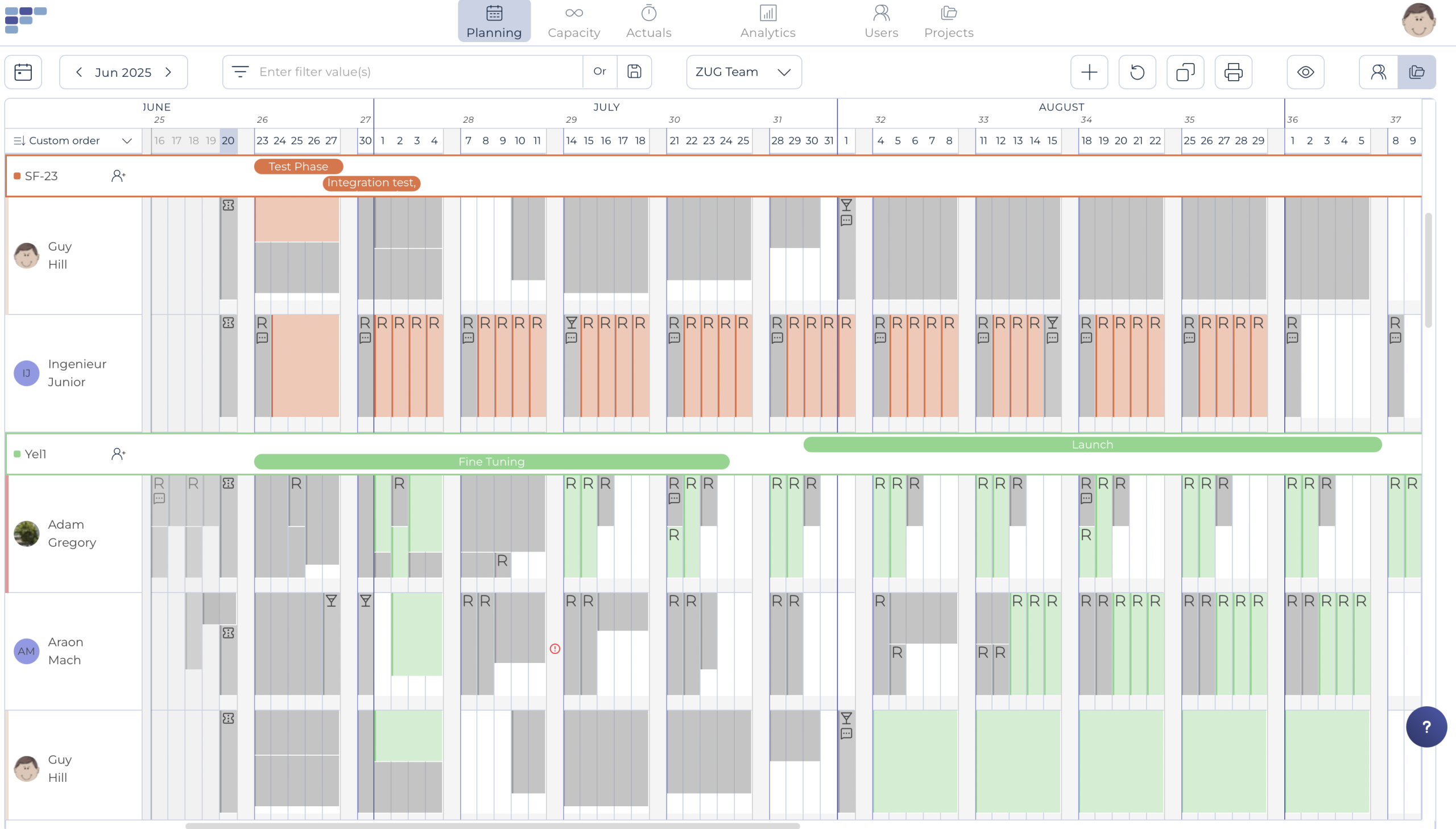 Con un simple hipervínculo generado por Teambook, puede compartir la planificación visual y las asignaciones de sus equipos con sus clientes. Esto les permite ver en tiempo real qué recursos están previstos para trabajar en sus proyectos, y realizar los ajustes necesarios en la planificación.