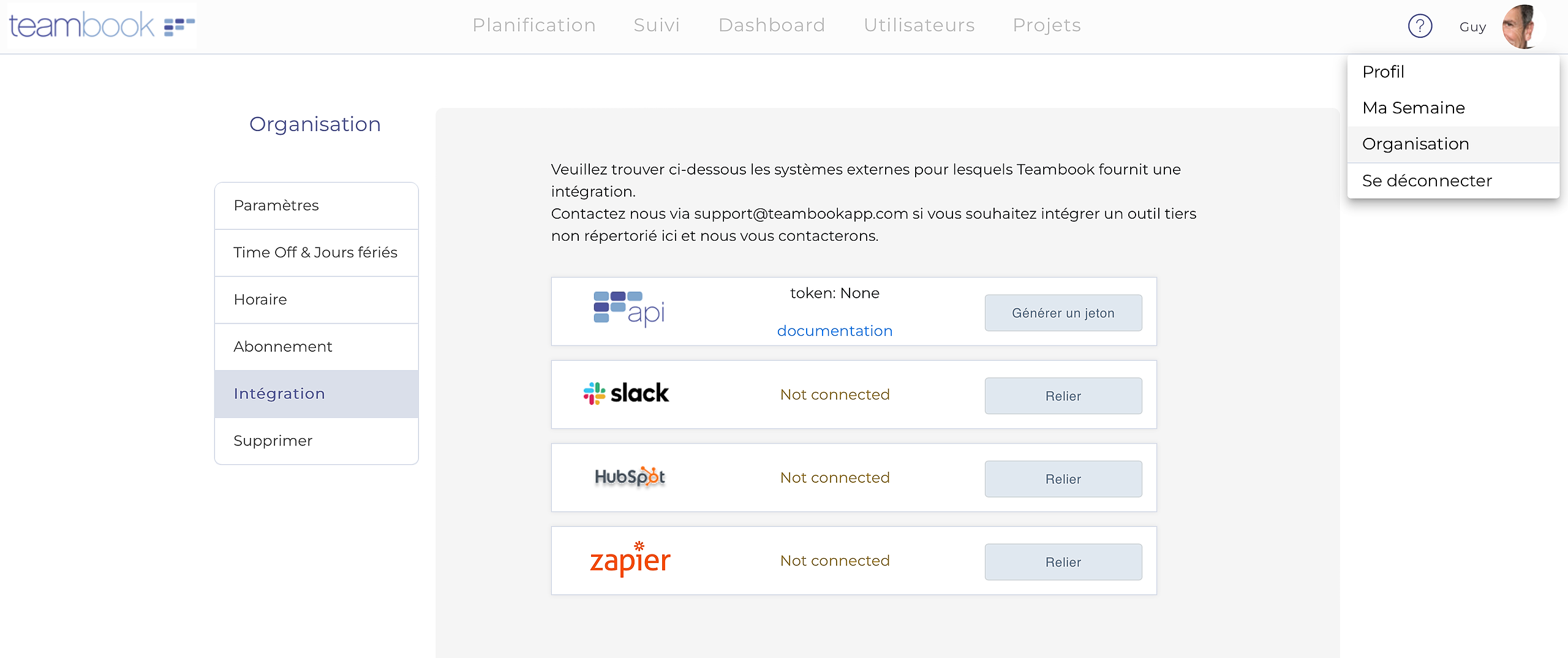 Vous pouvez désactiver l’intégration à tout moment depuis les paramètres d’intégration de Teambook.